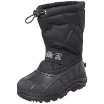 Little feet need big protection so when wet winter weather strikes pull out the Kamik Stormy waterproof winter boots for worry free play nbsp Waterproof adjustable upper with a locking bungee to hold things in place keeps snow and water away from toes and feet when snow drifts puddles and slush are just too hard to resist nbsp The extra grippy discover outsole and waterproof rubber shell prevents slips on slick surfaces and puts an end to squishy water filled boots For days when they canGÇÖt resist filling their boots (or their friends boots) with snow just for fun the removable thermal guard liner dries quickly so your kids are ready to play in no time Waterproof nylon upper and shell keeps water and moisture out 25F/ 32C comfort rating helps plan cold weather protection needs 6mm Thermal Guard Liner traps body heat to keep feet warm Moisture wicking lining moves moisture away from skin for dry feet Removable lining is replaceable for extended wear LiningGÇÖs reinforced seams and heel patch provide superior durability Adjustable Snow Collar with Bungee Lock Adjustable midfoot Velcro strap keeps boots on feet and customizes fit Flexible rubber shell for comfort during extended length activities DISCOVER rubber outsole maximizes traction Height 8 9 Inches Weight Per Pair 1 71 Lbs