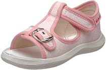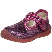 Your little one will look totally cute in these sparkly 7786 Mary Janes from Naturino. Glitter covered fabric upper in a casual sandal style with a round open toe. Buckled toe strap and quick entry hook and loop closure on the top strap. Fabric lining and a cushioned leather footbed. Flexible rubber midsole with a grippy rubber outsole.