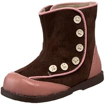 These chocolate brown Carley boots will keep her toes warm and toasty all season long. Pink leather accents and cream buttons make it fun hook and loop closures on both sides increase adjustability. See Kai Run shoes offer generous width and wide toe box for extra wiggling room flexible rubber sole is perfect for developing feet yet sturdy enough for playing outdoor.